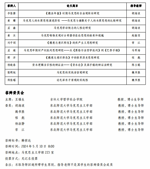 2024年信誉平台-靠谱博彩平台 马克思主义哲学专业硕士学位论文答辩会